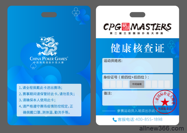 4. 所有参加本次活动的人员,在入住酒店时均须填写运动员健康登记表,查询14天内行程记录,并出示“海南一码通健康绿码”,由工作人员核实后发放健康核查证(身份信息须与CPG APP实名认证信息保持一致)。