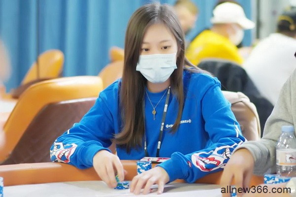 复赛的最后一个级别(1万/2万 Ante2万)小姐姐唐薇在用J♦J♠和对手AKo跑马失败后记分牌仅剩1.5万,没多久她在BB位被强制all-in,翻牌前王凤娇在MP位raise4.5万,CO位all-in17万,行动来到王凤娇这里她深思熟虑后选择弃牌。摊牌,唐薇:7♣2♣,CO位:7♦7♠。翻牌:J♠3♣9♣,唐薇有了同花听牌。转牌:A♦,河牌:10♥,唐薇听花miss止步主赛事第53名。