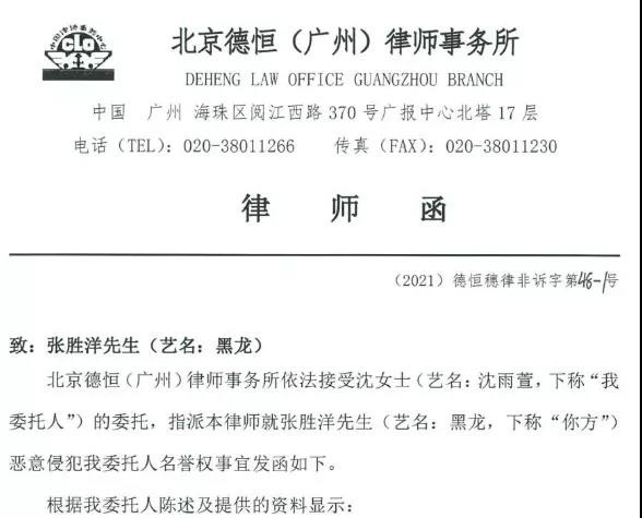 最近,黑龙直播间爆出的聊天记录节奏很大,称沈雨萱和三位主播有过其他关系等等,后续节奏不断,沈雨萱上线郑重警告黑龙等人,此事必将追责到底,官方不处理自己动手走法律途径,因为此事已经构成刑事案件,如今沈雨萱律师函警告起诉黑龙内容曝光!