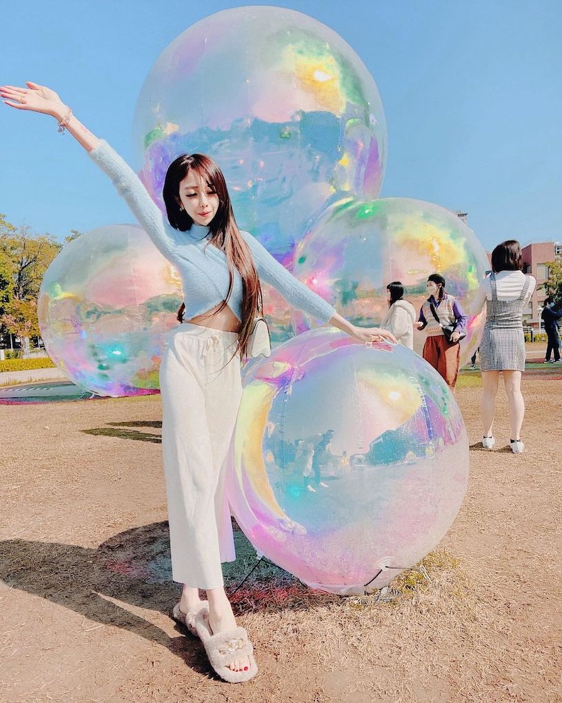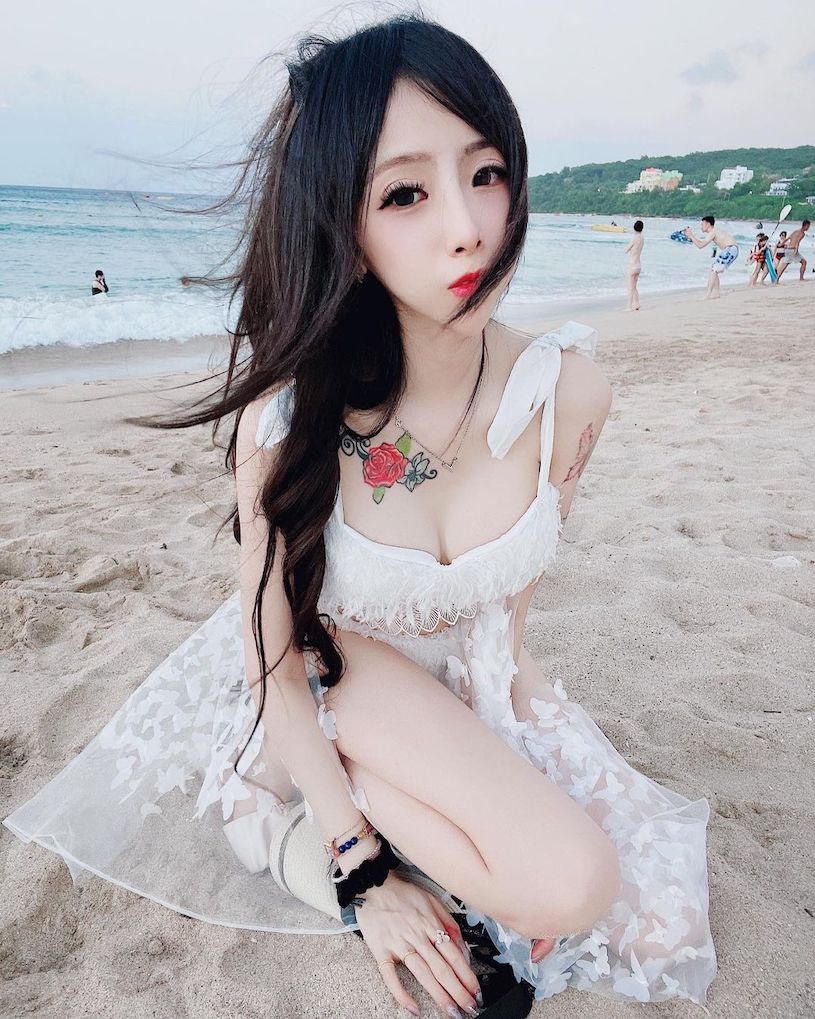 JKF女郎「? ? ? ?」星座是金牛座,喜歡旅行、看電影,她也會和粉絲們分享到海邊的火辣打扮,身穿白色好襯托她的白嫩好膚質,頭髮隨著海風飄逸,太有仙女感了~~最近台中的國立美術館前有巨型彩虹泡泡球,「? ? ? ?」也有去過拍照,夢幻的背景好適合她!