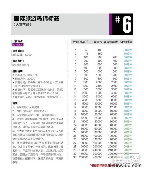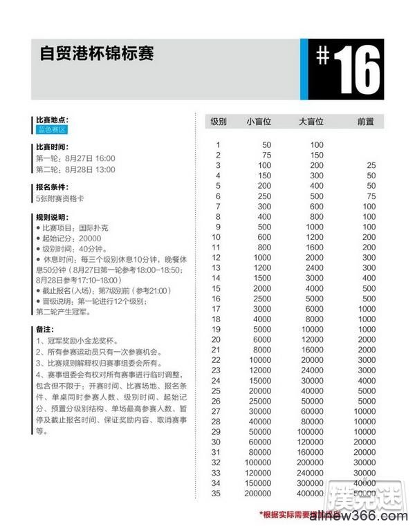 本届赛事附赛囊括了团队赛,锦标赛,挑战赛,邀请赛,资格赛共五大类比赛,其中部分国际扑克类比赛将采用大盲前置预置分模式。