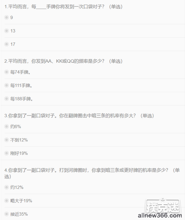 这个小测验一共八道题,不是很难,想知道自己对德州扑克概率的了解程度吗?试试这个小测验吧!
