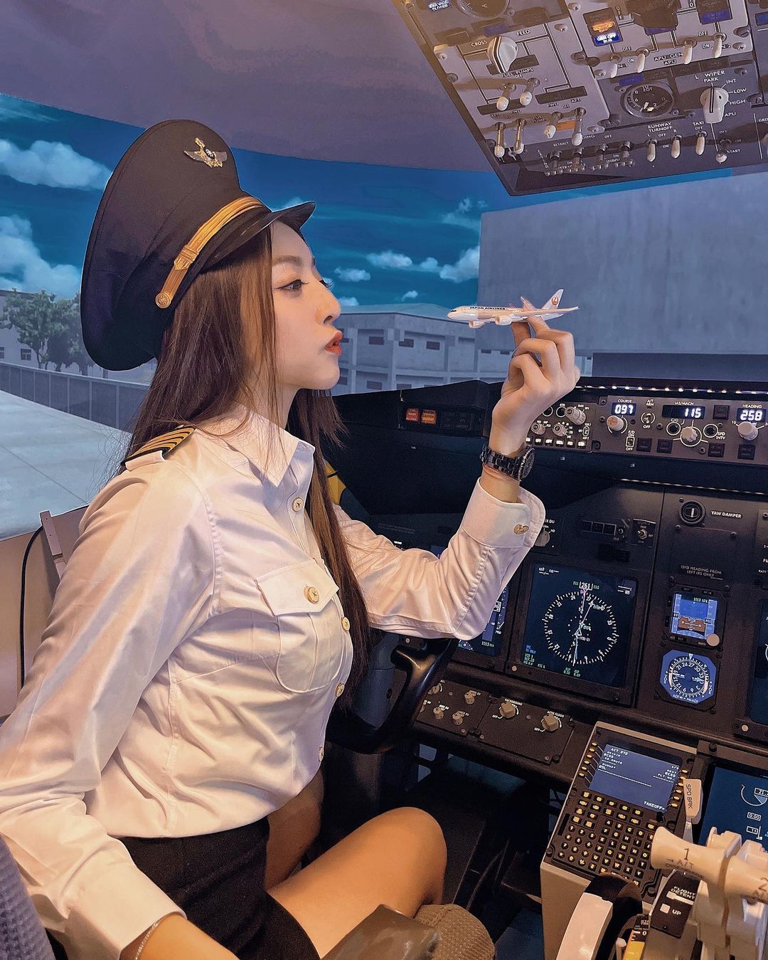 有著一雙逆天長腿的JKF女郎蘿拉Lola,最近參加模擬飛行體驗,穿上白襯衫和黑窄裙,化身絕美機長操控模擬飛行器,火辣裝扮讓粉絲都快升天了,希望蘿拉Lola老司機帶大家飛!