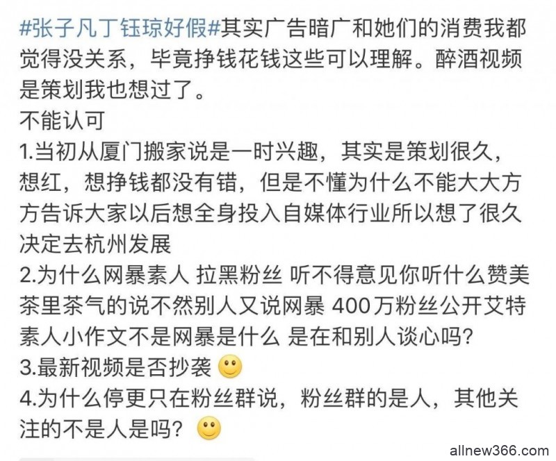 现在又曝出视频抄袭,当初醉酒视频是炒作,网暴素人,停更只在粉丝群说,不把其他人当人的事。